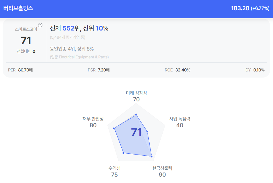 | 버티브홀딩스 종목진단 (출처=초이스스탁) |