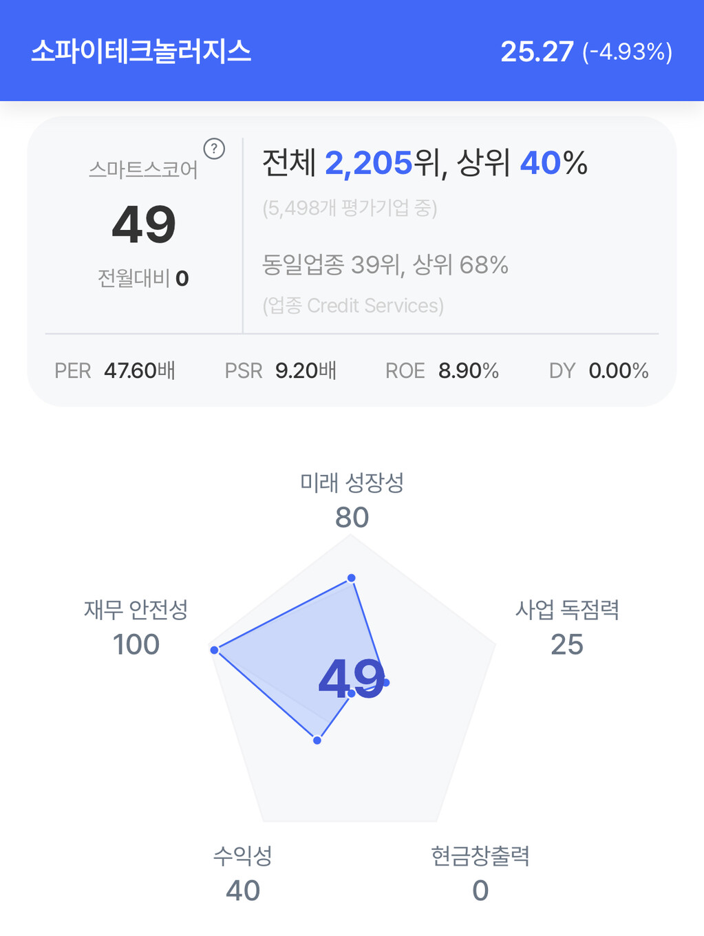 주가는 25.27달러로 4.93% 하락 마감했다.