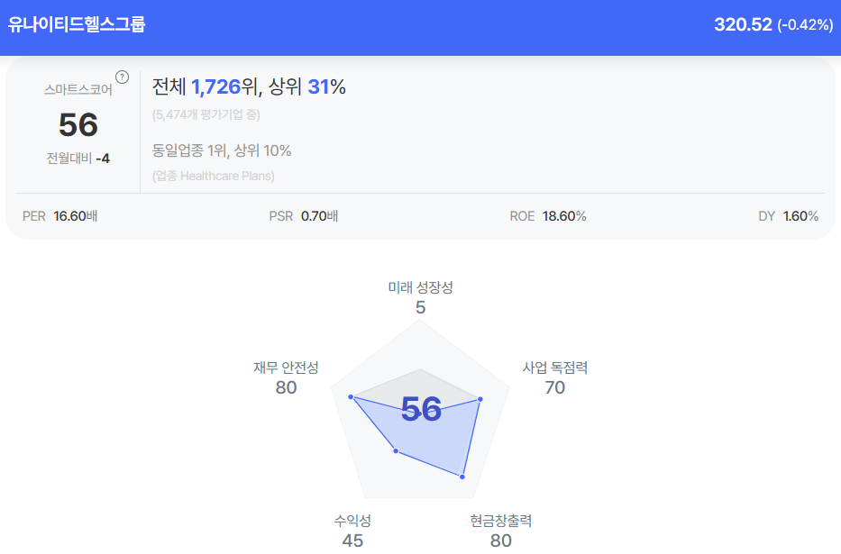| 유나이티드헬스그룹 종목진단 (출처=초이스스탁) |