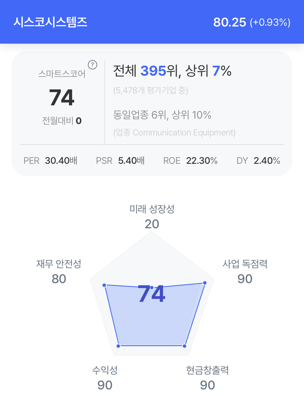 | 시스코 시스템즈 주가 분석. (자료=초이스스탁) |