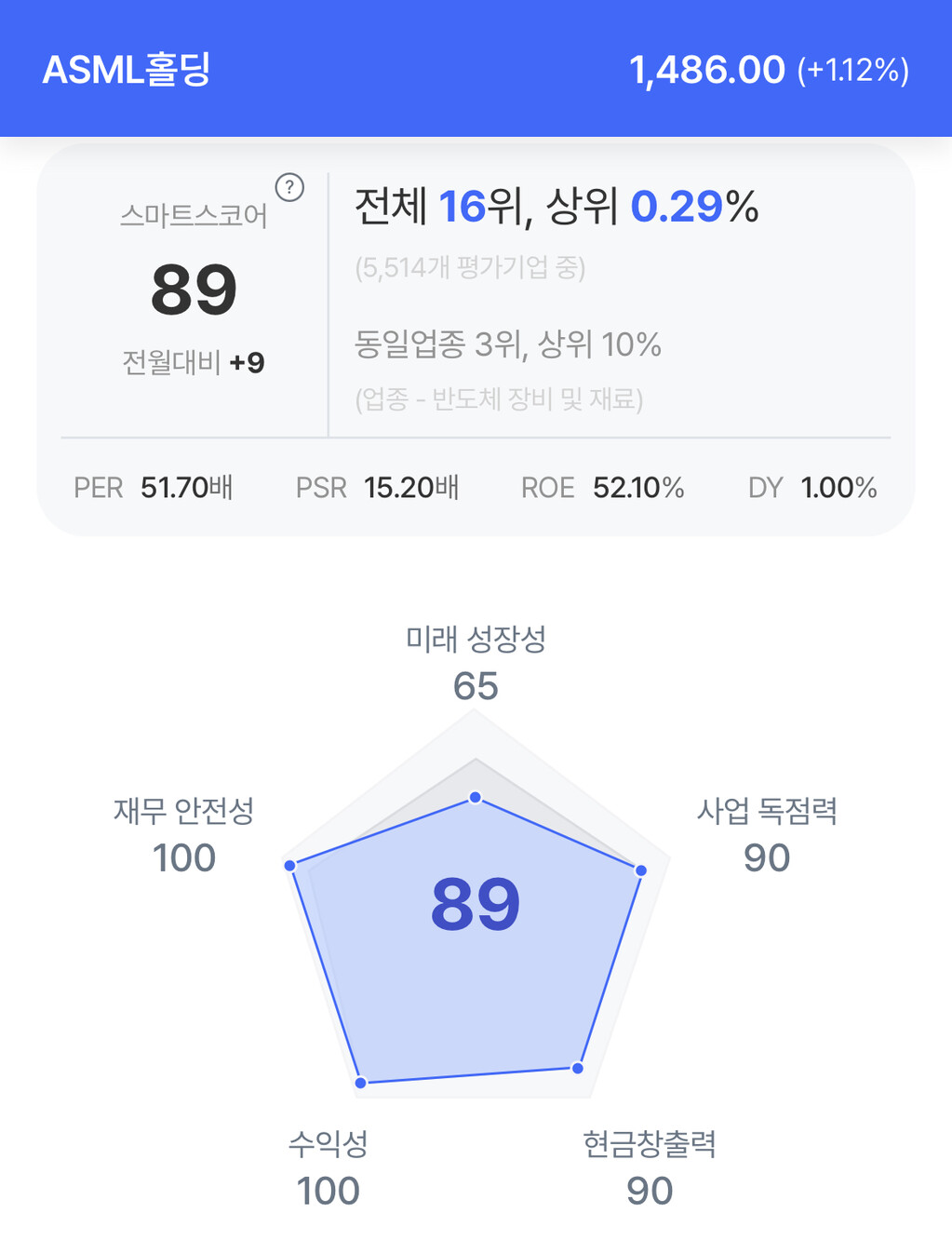 주가는 1,486.00달러로 1.12% 상승 마감했다.