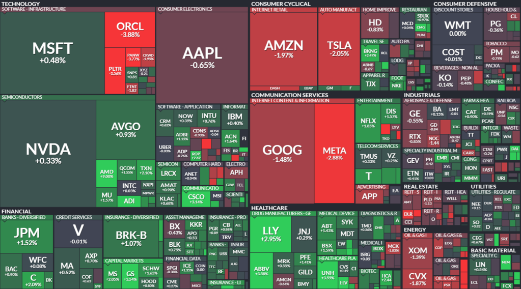 시가총액 1조달러 이상의 빅테크업체 중 엔비디아와 마이크로소프트, 브로드컴은 소폭 상승세를 보였지만 아마존과 알파벳은 1% 이상 내렸고 테슬라와 메타는 2%대 하락률을 기록했습니다.