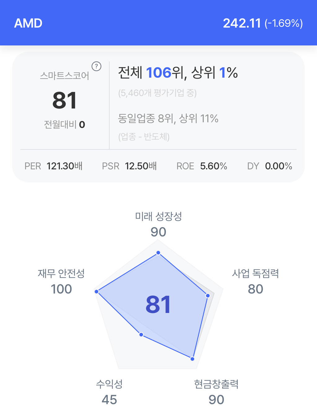 | AMD 주가 분석. (자료=초이스스탁) |