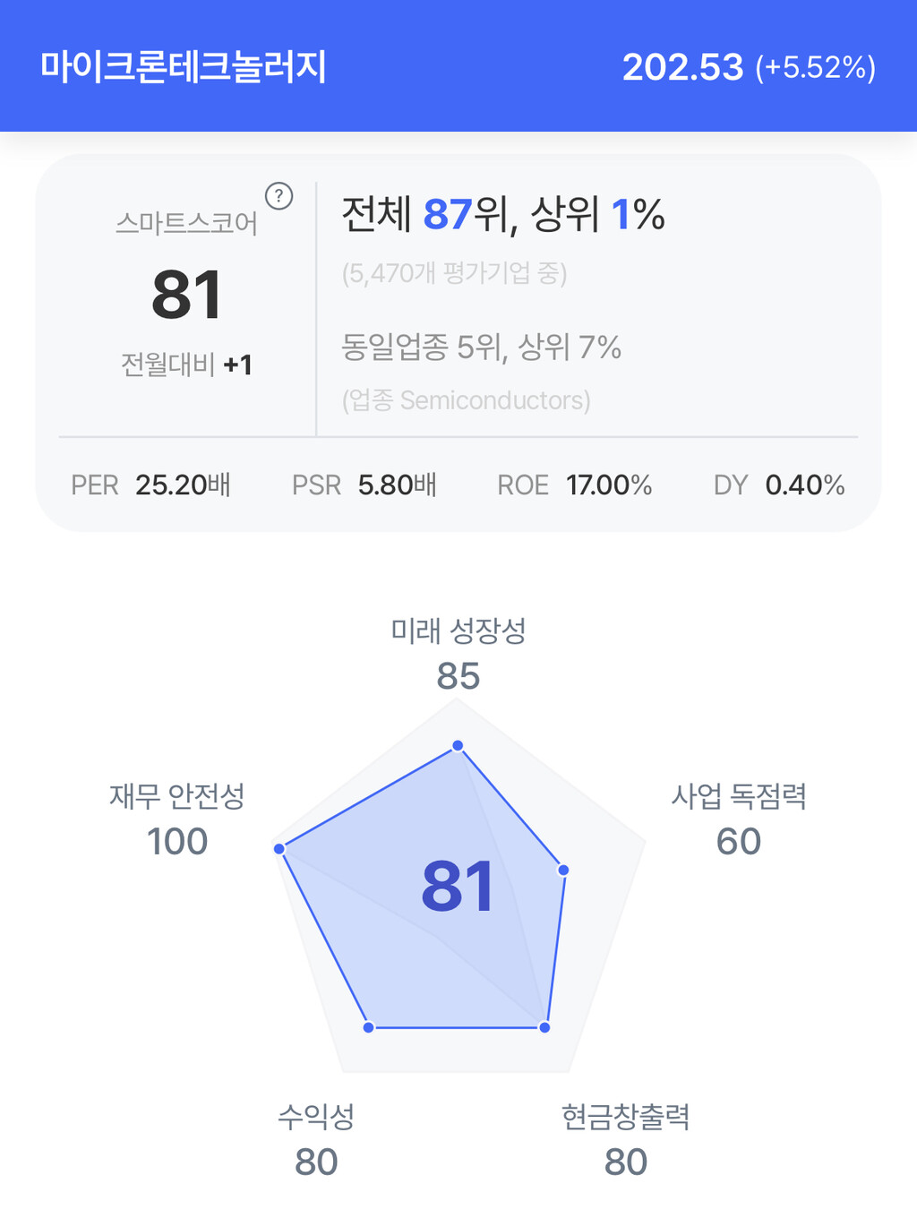 마이크론 주가는 202.53달러로 5.52% 상승 마감했다.