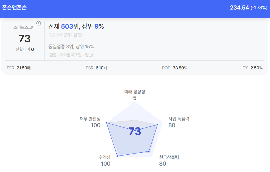 | 존슨앤존슨 종목진단 (출처=초이스스탁) |