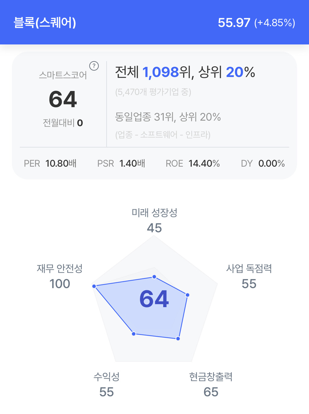주가는 55.97달러로 4.85% 상승 마감했다.
