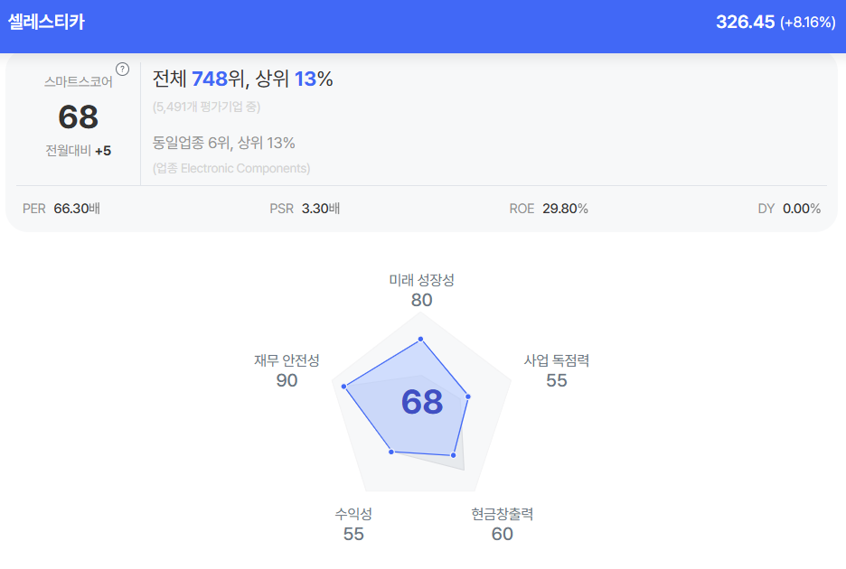 셀레스티카 종목진단 (출처=초이스스탁)