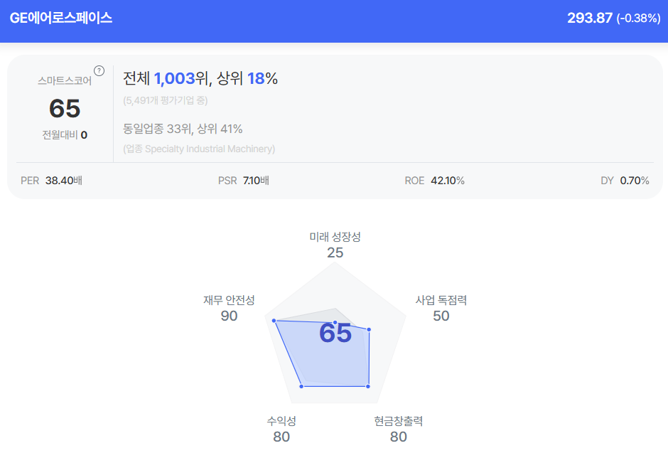 | GE에어로스페이스 종목진단 (출처=초이스스탁) |