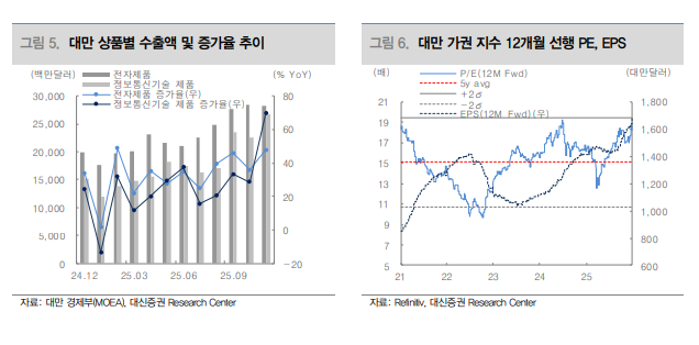 문건우 연구원은 "대만은 인공지능(AI) 산업 전환 과정의 구조적 성장이 기대된다"며 "조정 국면 진입 시 비중 확대 대응이 유효하다"고 조언했다.