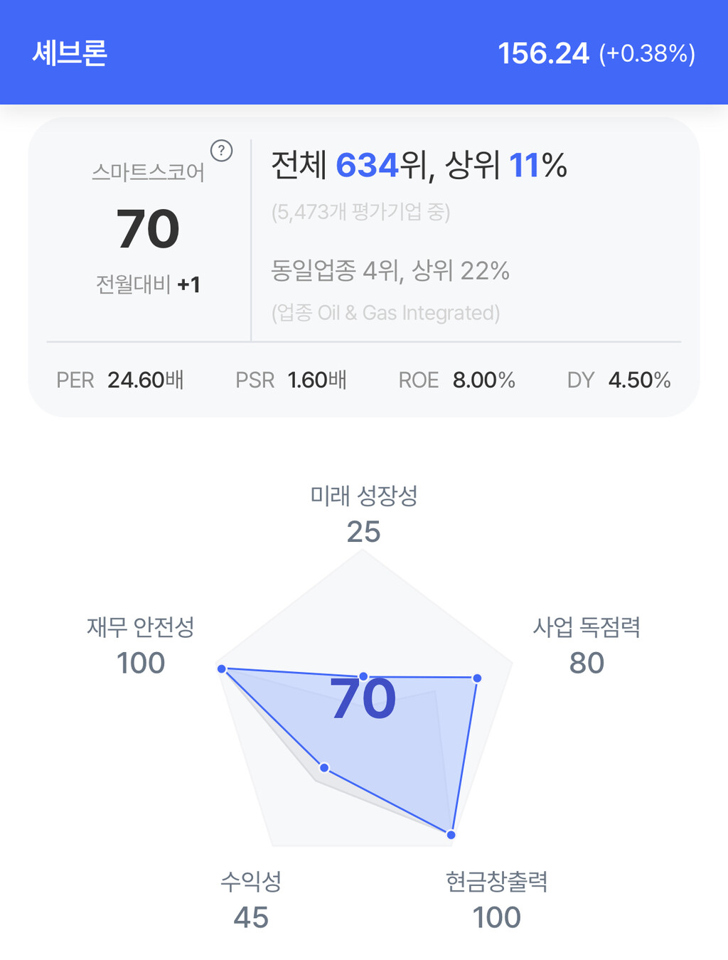 | 셰브론 주가 분석. (자료=초이스스탁) |