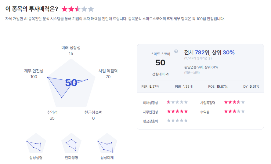 | DB손해보험 종목진단 (출처=초이스스탁) |