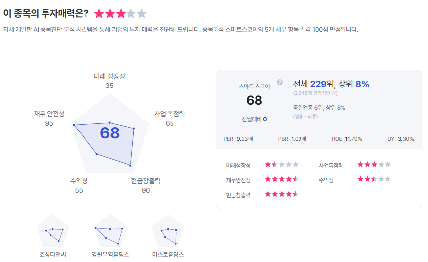| 영원무역 종목진단 (출처=초이스스탁) |