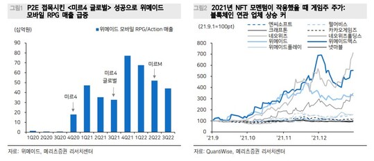 코인 가격 상승기에는 투기적 수요로 인해 게임 내 매출 상승 효과를 누릴 수 있는데, 최근의 블록체인 반등은 게임의 성과 기대감을 높이기에 알맞아 보인다는 분석이다.