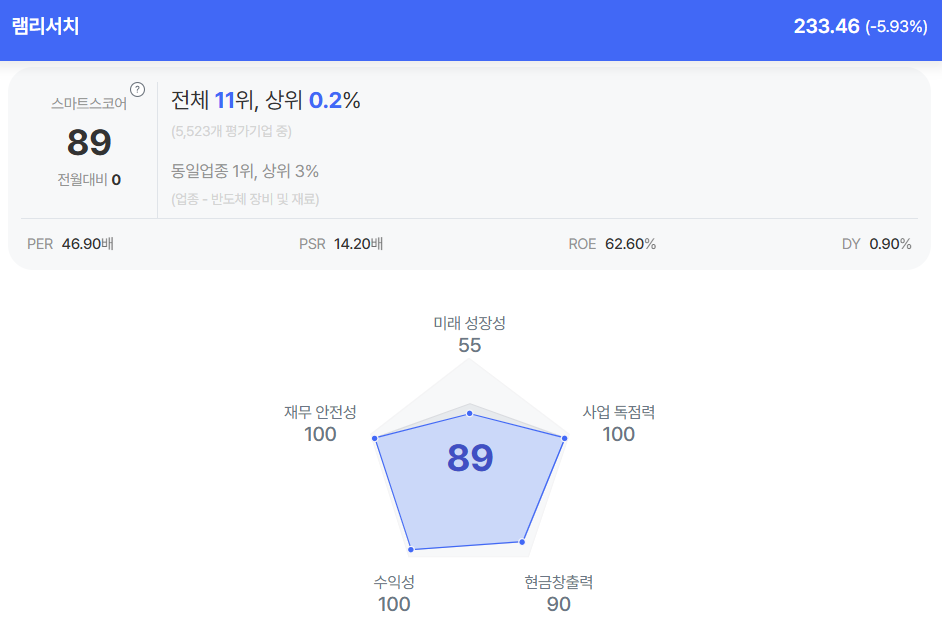 | 램리서치 종목진단 (출처=초이스스탁) |