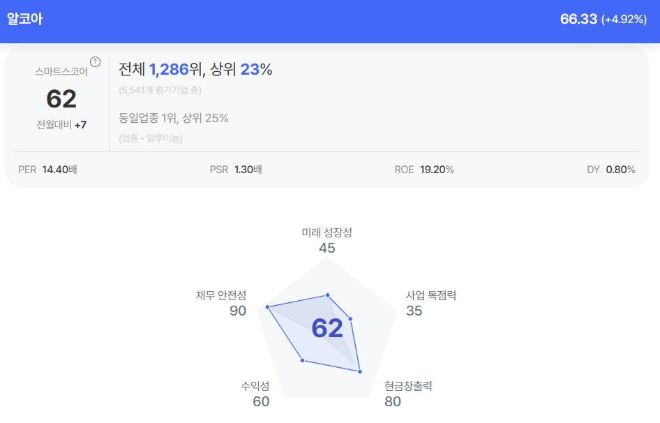 이종형 연구원은 "중동 전쟁 장기화에 따른 유가 및 LNG 가격 상승이 알루미늄 가격의 추가 상승으로 이어질 경우, 알코아의 직접적인 수혜가 기대된다"고 판단했다.