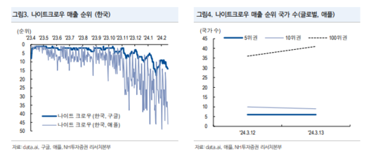 안재민 연구원은 "정확한 비율은 공개되지 않았으나 10%를 가정하면 출시 초기 일매출은 20억원 이상 될 것으로 판단된다"며 이를 감안해 나이트크로우 글로벌 버전의 초기 일평균 매출액을 8억원에서 12억원으로 상향 조정했다.