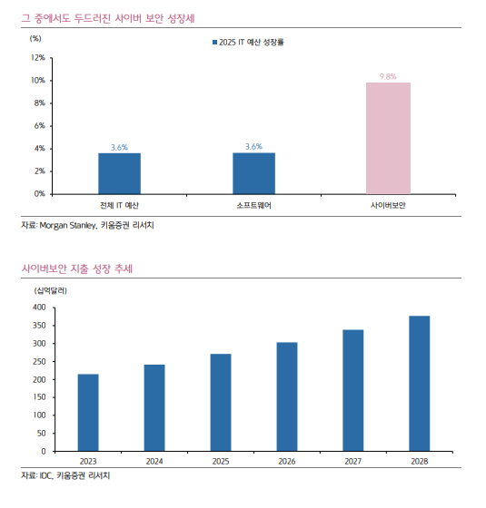 조민주 연구원은 "다만 동시에 늘어나고 있는 사이버 위협 환경에 대해서도 주목할 필요가 있다"며 "중장기적인 관점에서 사이버 보안에 대한 필요성과 이를 요하는 수준이 점차 높아지면서 관련 예산 지출도 함께 빠르게 증가할 것"이라고 전망했다. 이는 관련 섹터와 종목에 프리미엄을 부여할 수 있을 것이란 해석이다.