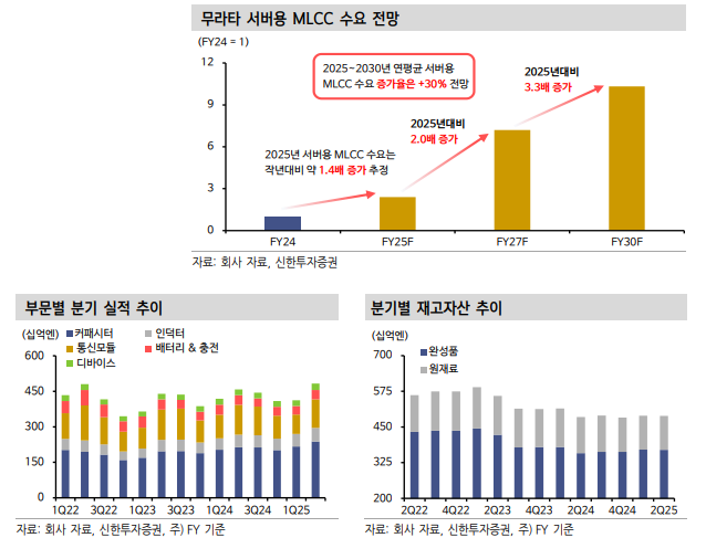 신한투자증권에 따르면, 무라타는 회계연도 2025년 2분기(7~9월) 매출액, 영업이익은 각각 8%, 32% 컨센서스를 상회하는 호실적을 발표했다.