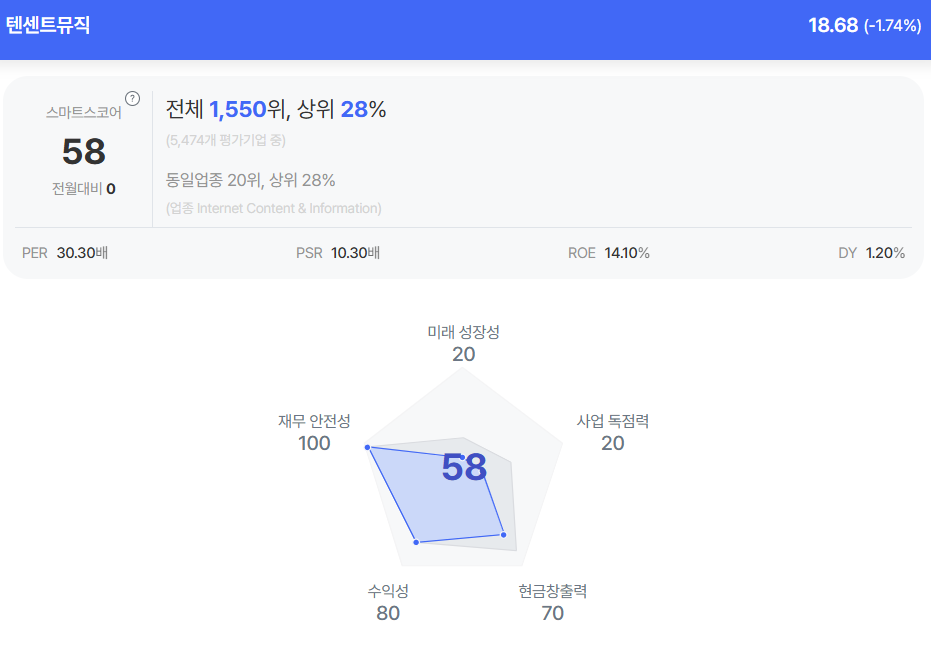 | 텐센트뮤직 종목진단 (출처=초이스스탁) |