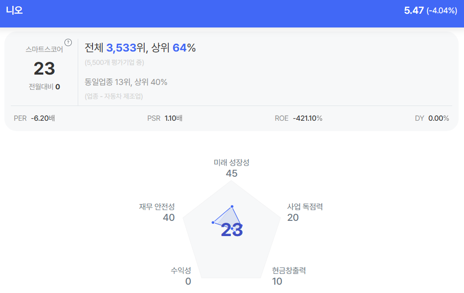 | 니오 종목진단 (출처=초이스스탁) |