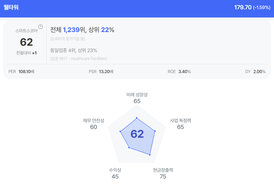 | 웰타워 종목진단 (출처=초이스스탁) |