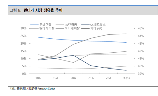 개인용 렌터카의 꾸준한 수요 증가 등을 바탕으로 Q의 지속적인 성장이 기대되며, 금리가 정점에 이름에 따라 주요 조달 비용인 금리 하락에 따른 수익성 개선이 전망된다는 분석이다.