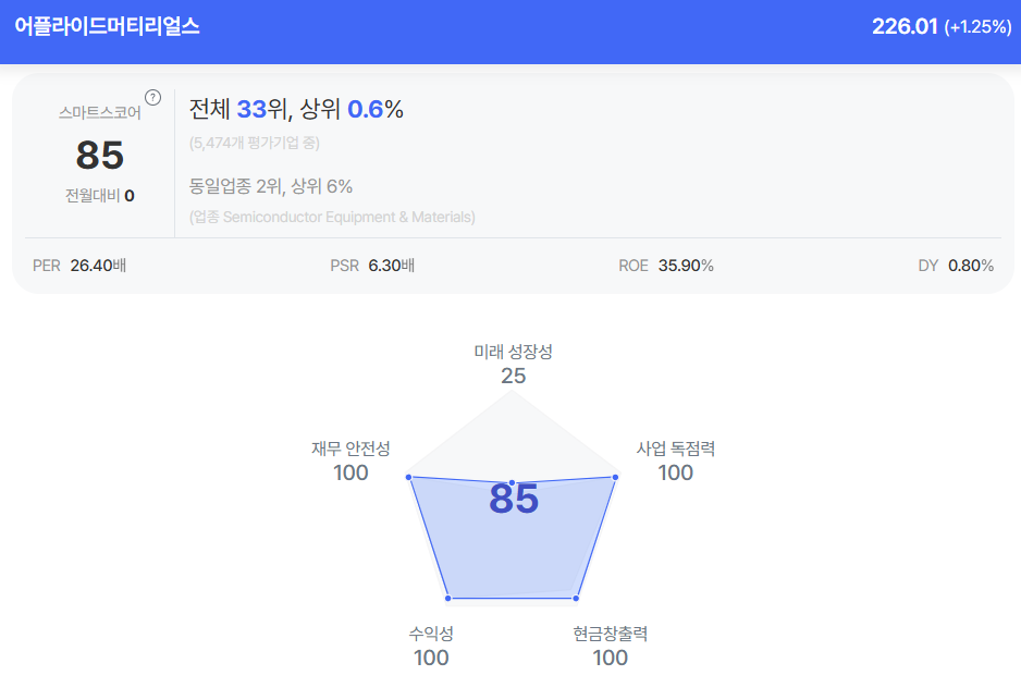 | 어플라이드머티리얼스 종목진단 (출처=초이스스탁) |