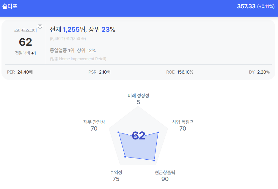 | 홈디포 종목진단 (출처=초이스스탁) |