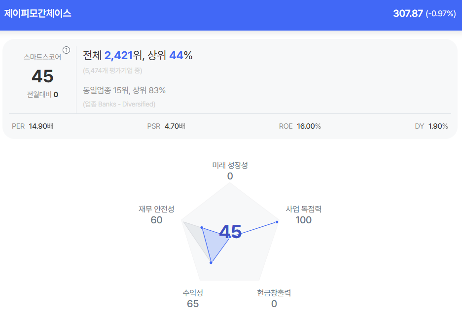 | JP모건체이스 종목진단 (출처=초이스스탁) |