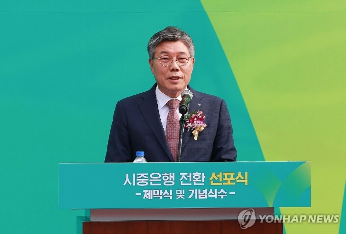 | 황병우 대구은행장이 6일 오전 대구 수성구 대구은행 본점 콘퍼런스홀에서 시중은행 전환과 관련해 기자 간담회를 갖고 있다. (사진=연합뉴스) |