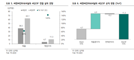 하나증권에 따르면, 씨앤씨인터내셔널의 4분기 연결 매출은 631억 원으로 전년 대비 64% 증가하고, 영업이익은 113억원으로 143% 늘어 또 다시 분기 최대 실적을 기록할 것으로 추정된다. 북미 고객사의 물량 확대와 국내 고객사의 히트 제품 증가, 글로벌 고객사 물량 추가 확보 등에 기인한다는 평가다.