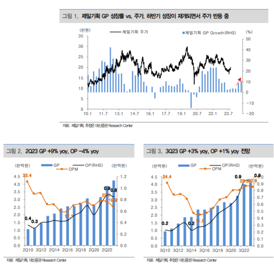 광고시장과 관련해, 김회재 연구원은 "아직 광고 시장이 좋아지는 것은 아니지만, 경제 상황 대비 상반기에 지나치게 보수적으로 집행했던 광고주들의 비용 집행이 하반기에 회복 되는 것"이라며 "제일기획 실적은 상반기 비우호적인 시장 환경에도 불구하고, 디지털과 해외 비계열을 중심으로 견조한 성과를 달성했다"고 판단했다. 이에 투자의견 매수와 목표주가 3만원을 유지했다.