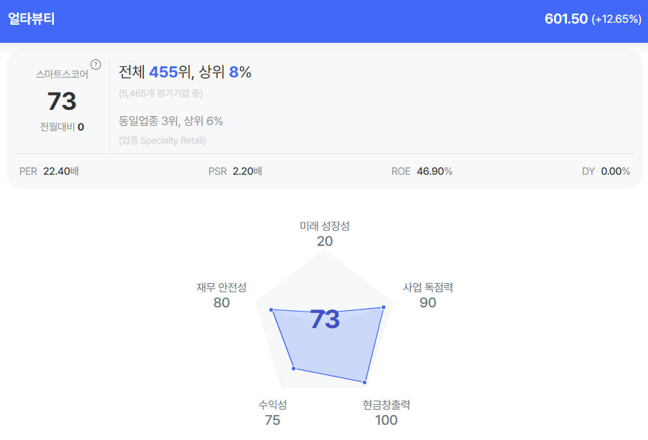 | 울타뷰티 종목진단 (출처=초이스스탁) |