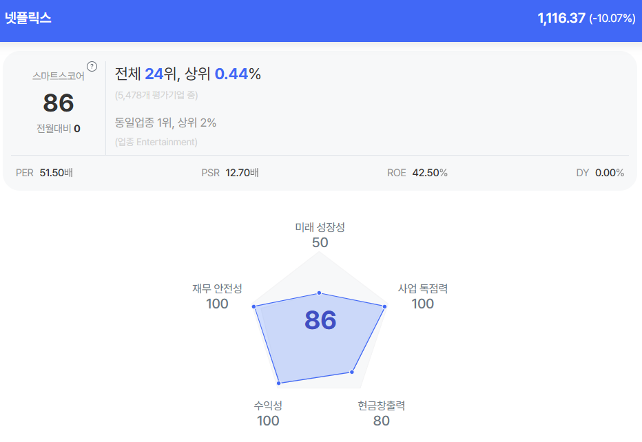 | 넷플릭스 종목진단 (출처=초이스스탁) |