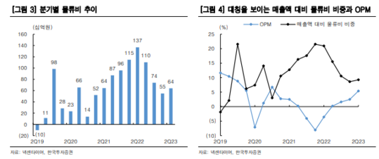 김진우 한국투자증권 연구원은 "다만 수익성은 물류비와 재료비가 하락하며 본격적인 개선이 기대된다"며 "원재료 가격 하락 분이 투입원가에 반영되는 시기가 4~6개월로 다른 업체 대비 길기 때문"이라고 설명했다.