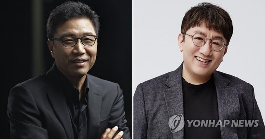 | SM엔터테인먼트 이수만 전 총괄 프로듀서와 하이브 방시혁 의장 (출처=연합뉴스) |