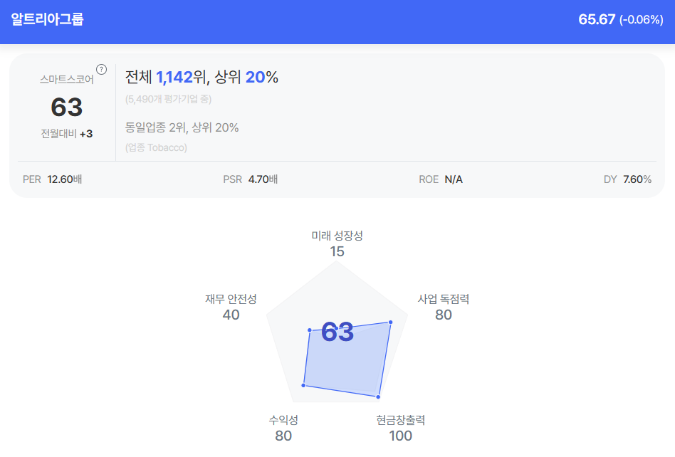 | 알트리아그룹 종목진단 (출처=초이스스탁) |