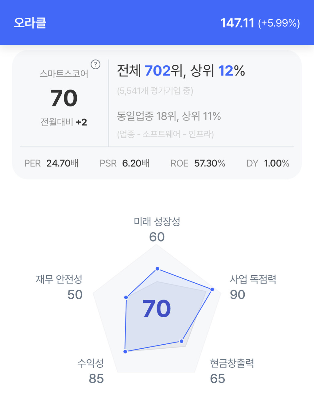 주가는 147.11달러로 5.99% 상승 마감했다.