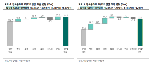 박은정 하나증권 연구원은 "한국콜마의 2023년 실적은 연결 매출 2.3조원으로 전년 대비 21% 증가하고, 영업이익은 1.6천억원으로 117% 성장하며 역대 최대 성과가 기대된다"며 "하반기 모든 법인이 호실적을 이어감에 따라 모멘텀 점증이 예상된다"고 분석했다.