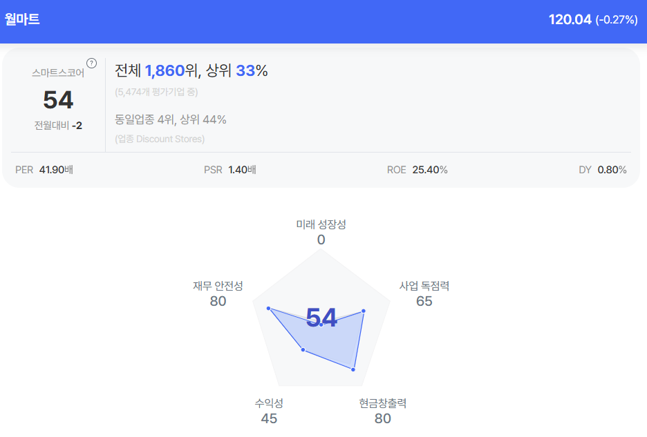 | 월마트 종목진단 (출처=초이스스탁) |