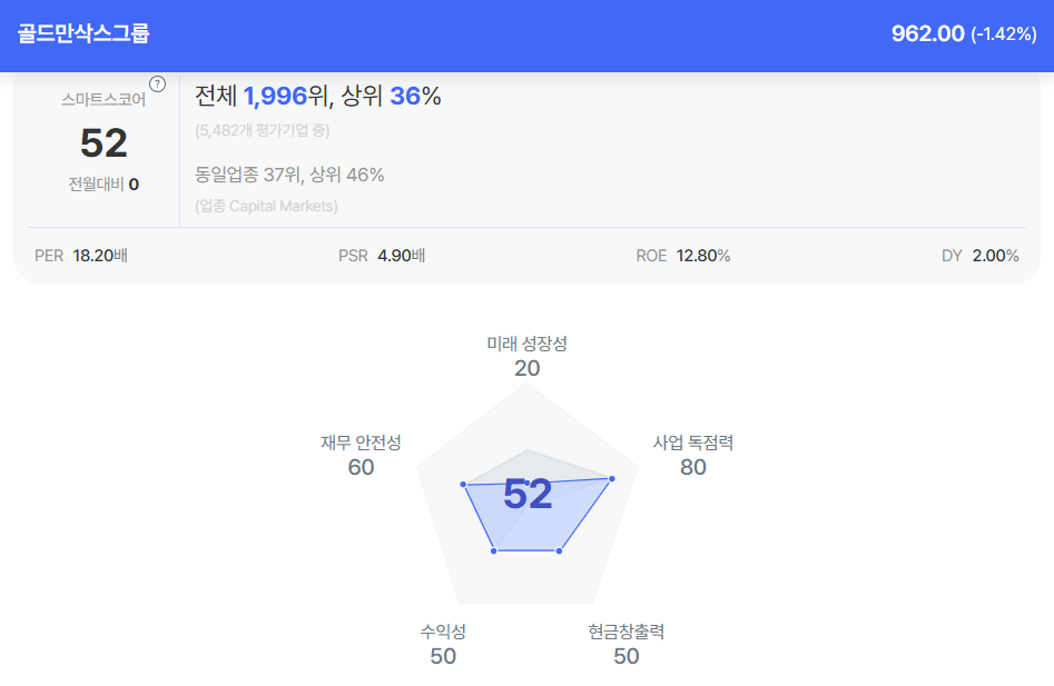 | 골드만삭스 종목진단 (출처=초이스스탁) |