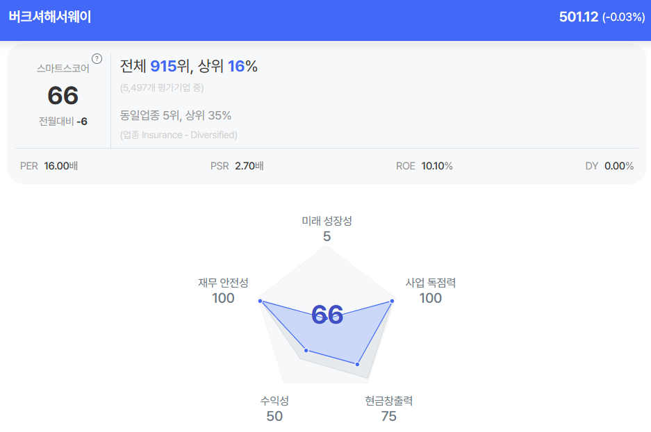 | 버크셔해서웨이 종목진단 (출처=초이스스탁) |