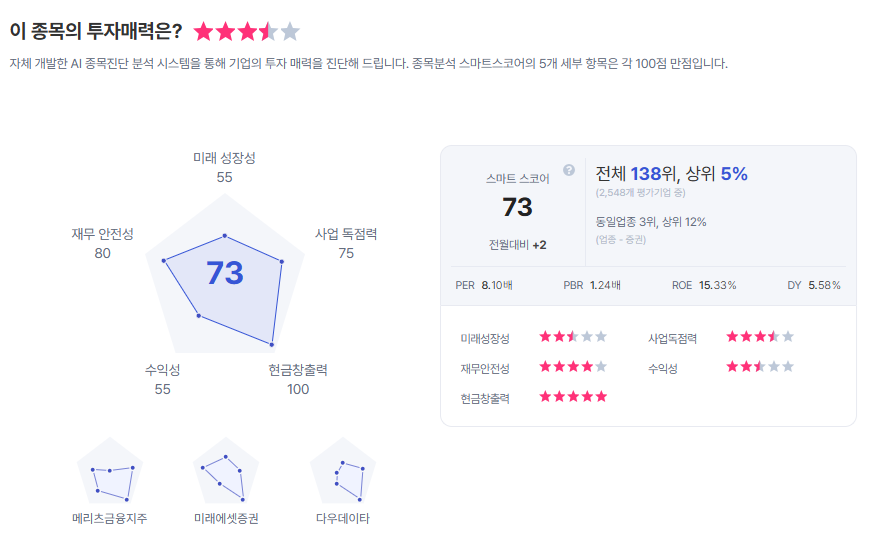 한국금융지주 종목진단 (출처=초이스스탁)