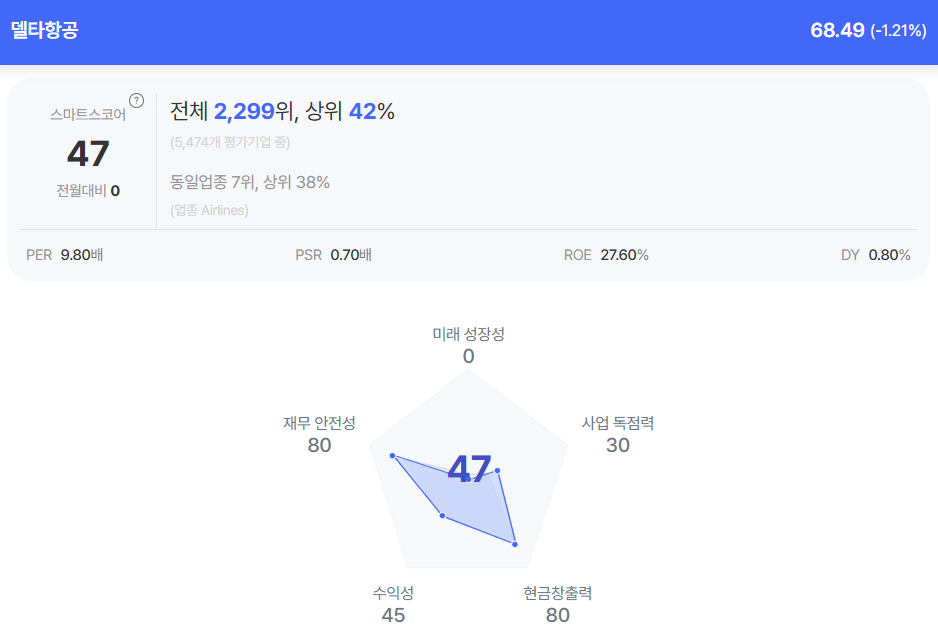 | 델타항공 종목진단 (출처=초이스스탁) |