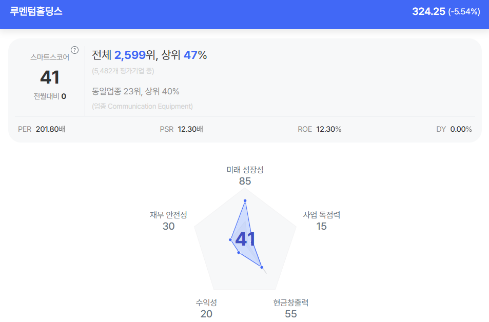 | 루멘텀홀딩스 종목진단 (출처=초이스스탁) |