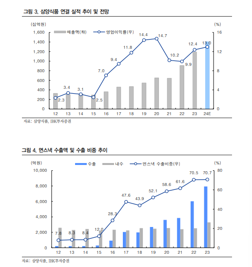 IBK투자증권에 따르면, 삼양식품의 올해 1분기 연결 매출액은 3119억 원으로 전년 대비 27% 증가하고, 영업이익은 430억 원으로 80.4% 늘어 매출은 컨세서스를 소폭 하회하겠지만 영업이익은 시장 기대치를 약 16% 웃돌 것으로 추정된다.