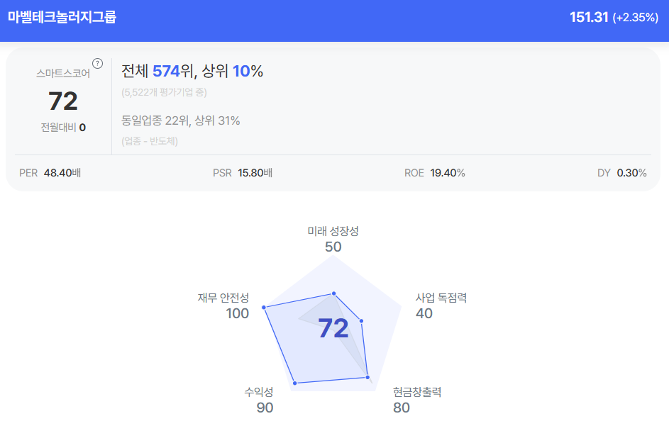 | 마벨테크놀러지그룹 종목진단 (출처=초이스스탁) |