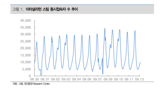 이지은 대신증권 연구원은 "출시 이후 동사의 초기 목표였던 스팀 동시접속자 수 2만명을 달성했다"며 "9월 현재 일간 최고 동시접속자 수는 3만명 수준 유지 중으로 증가하는 트래픽과 함께 매출 역시 증가세인 것으로 파악된다"고 밝혔다.