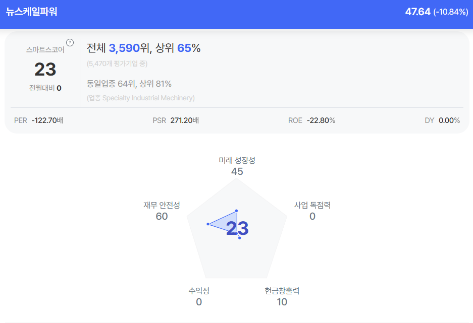 뉴스케일파워 종목진단 (출처=초이스스탁)