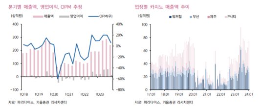 다만, 2024년은 중국VIP의 더딘 회복, 해외여행 확대 및 신규 경쟁 리조트 등장 등 전년 대비 리스크 포인트가 확장될 수도 있다는 지적이다. 이에 투자의견 매수는 유지하나 목표주가는 기존 2만3000원에서 2만500원으로 하향 조정했다.